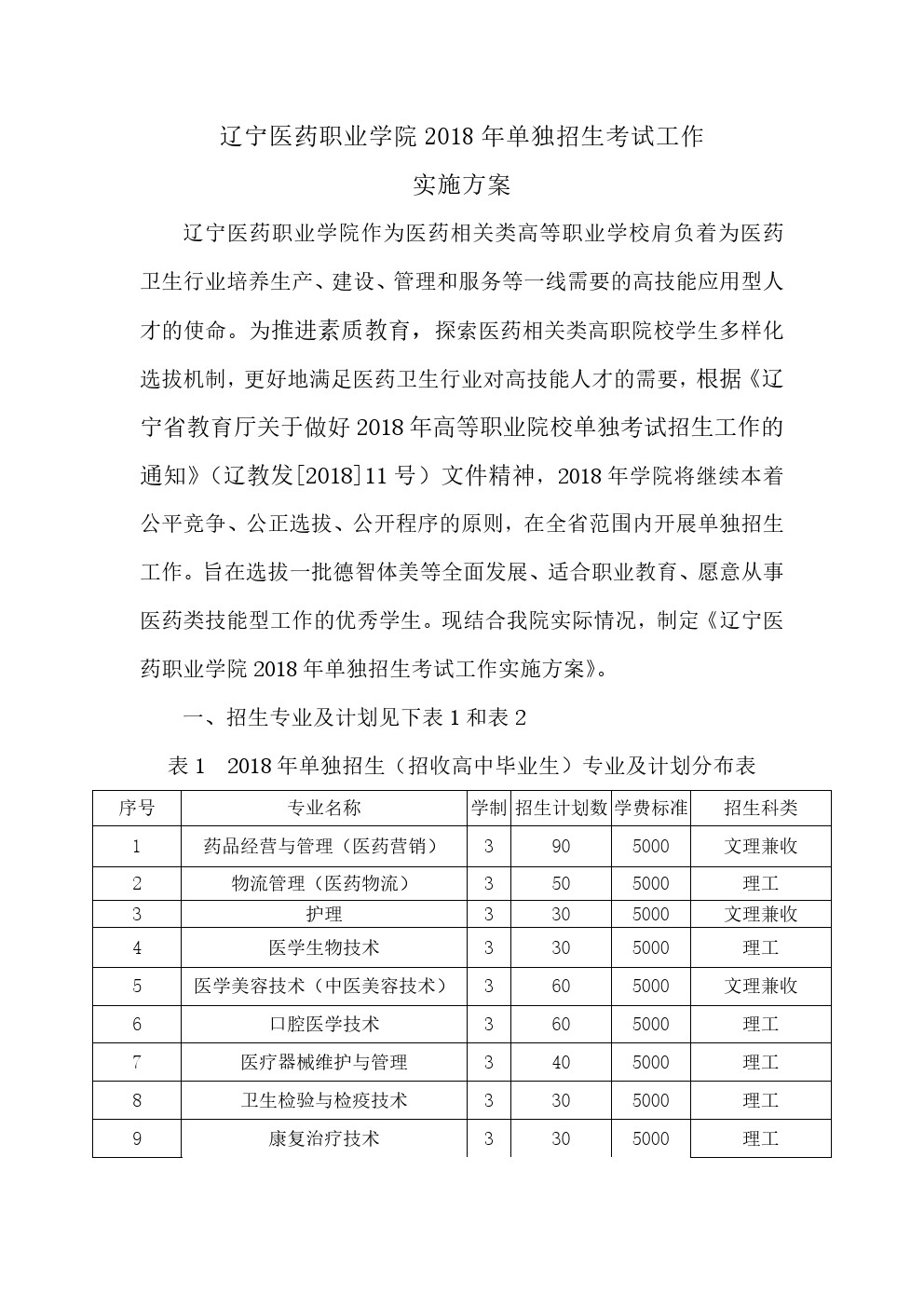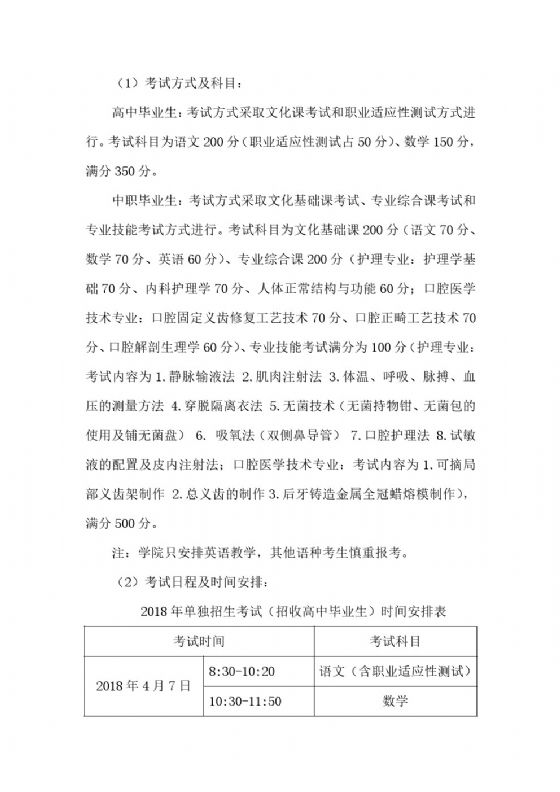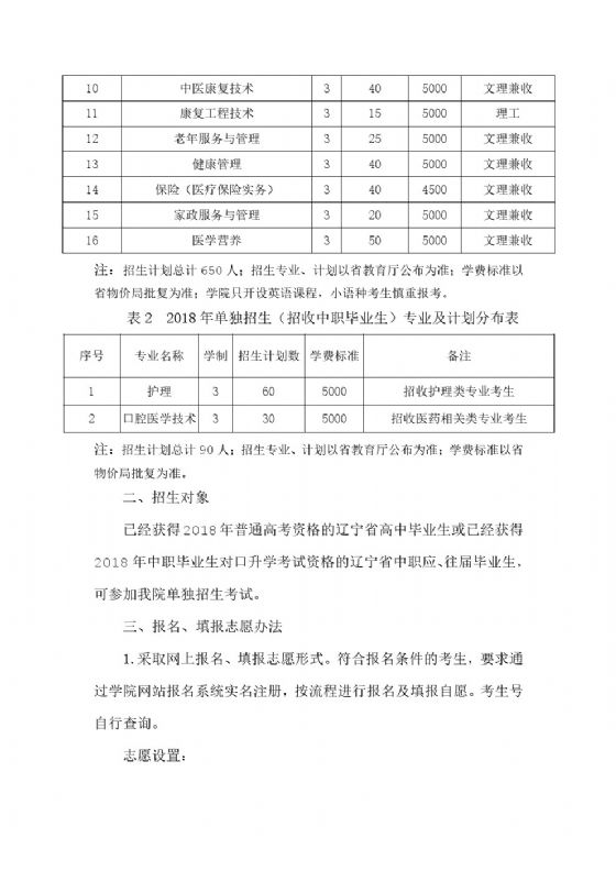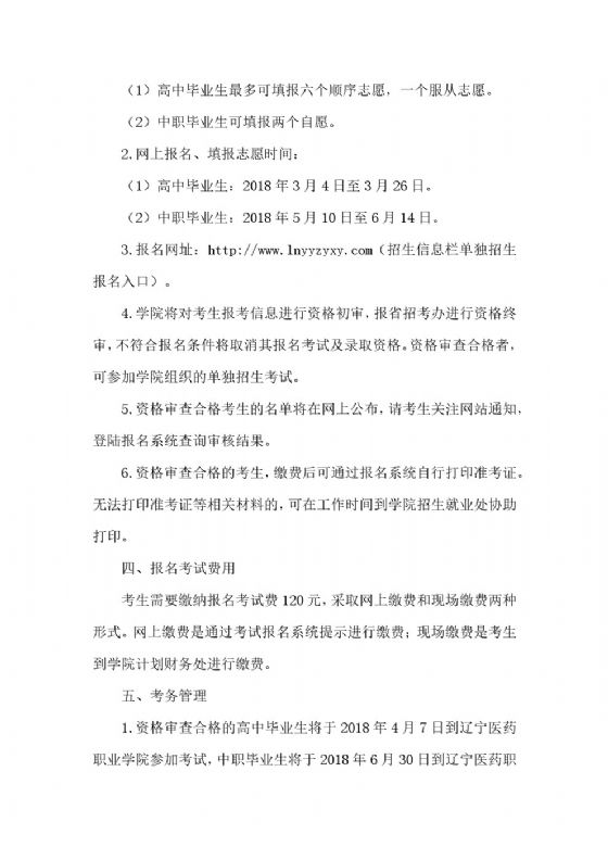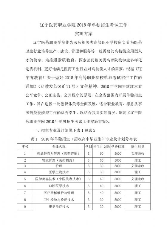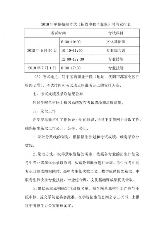 辽宁医药职业学院2018年单独招生考试工作实施方案