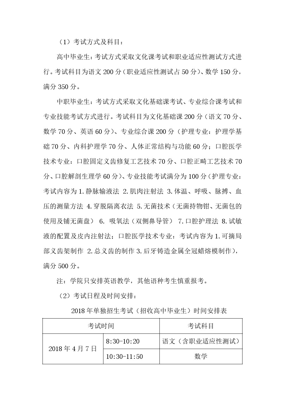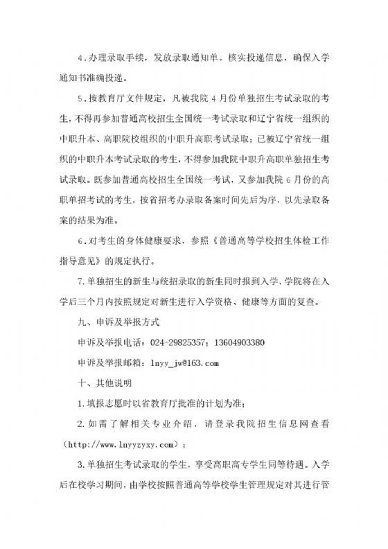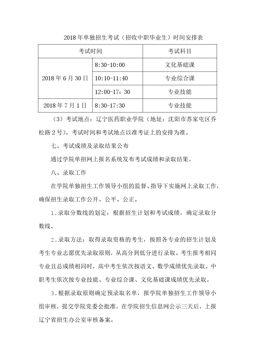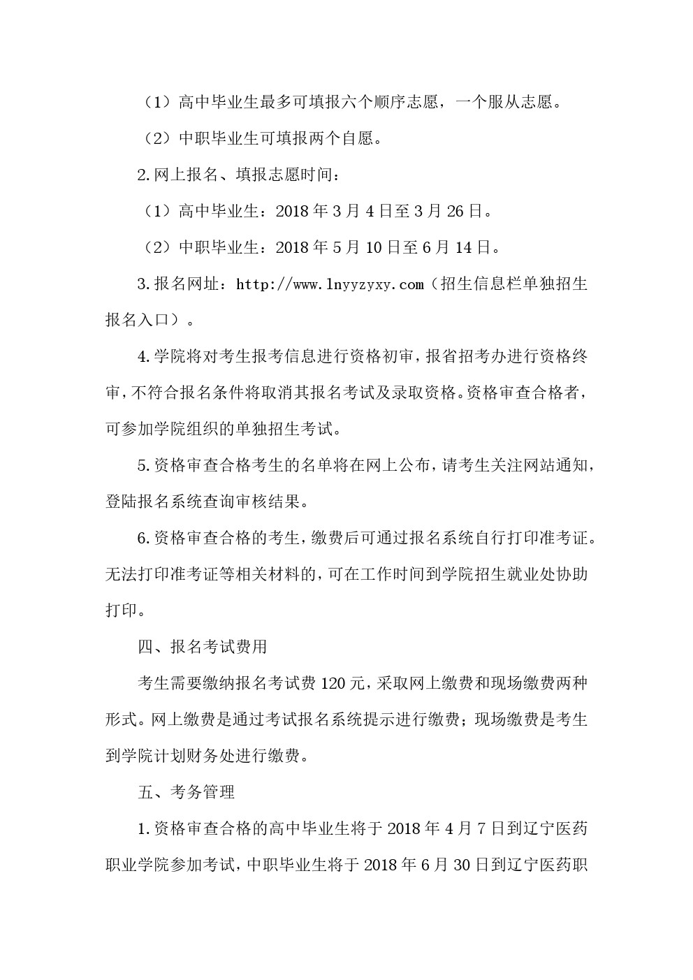 辽宁医药职业学院2018年单独招生考试工作实施方案