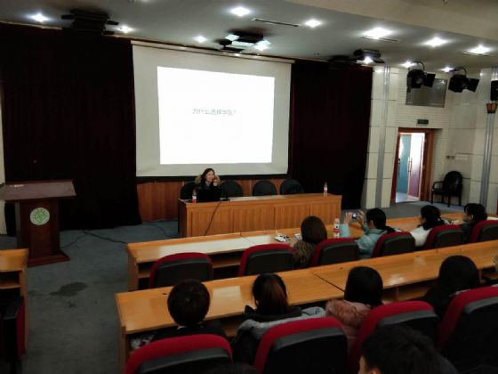 12月19日,沈阳市就业和人才服务局主办的“沈阳市创业创新巡回宣讲活动(苏家屯站)”在我院学术报告厅举行。沈阳市人才和就业服务局创业导师库成员、沈阳市康诺生物科技有限公司总经理、艾艾贴全国总经销商王玫女士来院宣讲,学院各系老师和学生代表听取了宣讲。