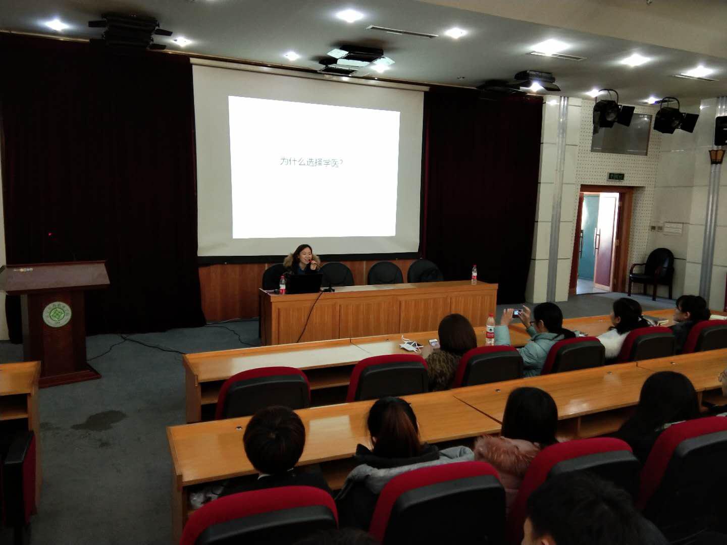 王玫从与学生讨论“为什么选择学医”引入宣讲主题,讲述了自己响应国家“大众创业 万众创新”号召,选准大健康产业,瞄准艾灸的健康保健作用,成功创业的经验。为广大师生普及了创新创业知识,传授了创业技能。现场互动环节将宣讲活动推向了高潮,王玫逐一回答了学生的提问,让有创业意向的学生理清了思路,明确了自己的发展方向,使学生受益匪浅。