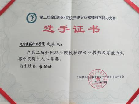 本次大赛包括理论考核、说课、护理技能操作三个赛项,经过3天激烈角逐,我院教师以扎实的理论功底、过硬的专业技能力,获得评委好评,李佳楠老师荣获高职组个人二等奖。充分展示了我院教师的职业风采,同时也达到了以赛促教、以赛促学、以赛促改的目的,为辽宁省及学院争得荣誉。(文、图/王星歌、李佳楠)