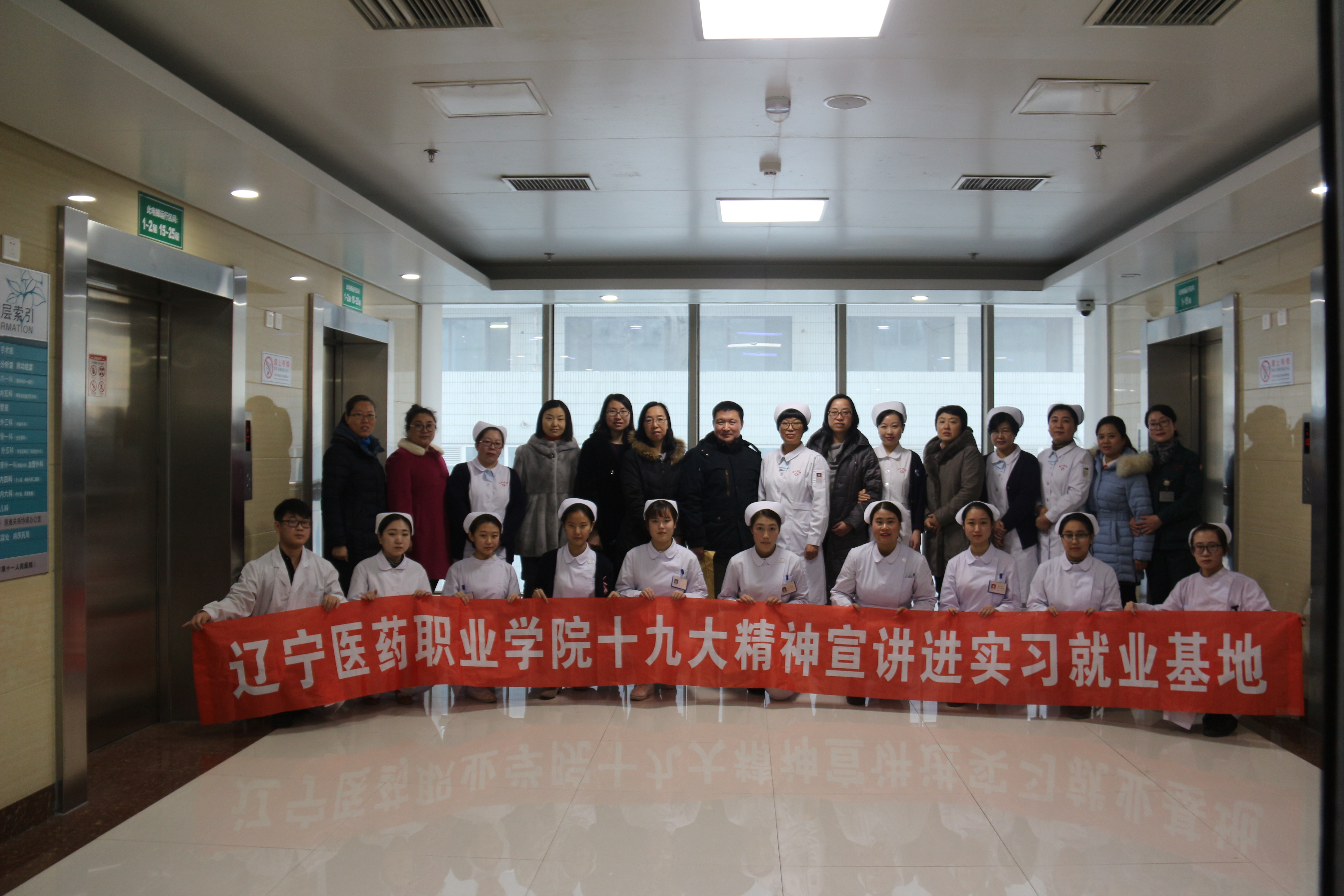 按照学院党委宣讲团的安排,12月20日,党委成员、潘树枫副院长带队来到护理系实训就业基地——沈阳市苏家屯区中心医院,宣讲十九大精神,走访并看望实习学生,与该院护理部领导等进行了热诚而深入的交流。学院党委工作部、教务处、招生就业处及护理系负责人随同前往。