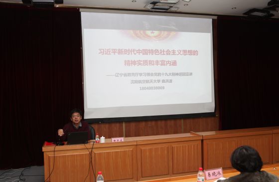 为深入系统学习领会十九大精神,12月6日,学院特邀辽宁省教育厅学习领会党的十九大精神巡回宣讲团讲师——沈阳航空航天大学曲洪波副教授来院,在学术厅做《习近平新时代中国特色社会主义思想的精神实质和丰富内涵》专题讲座。学院领导、教师及学生代表听取了讲座。