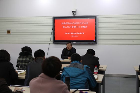 11月13日,学院党委召开理论学习中心组学习扩大会,专题深入学习领会十九大精神。学院领导、中层干部及六级以上普通管理岗位人员、民主党派支部主委参加了学习。党委刘万芳书记主持会议并讲话。