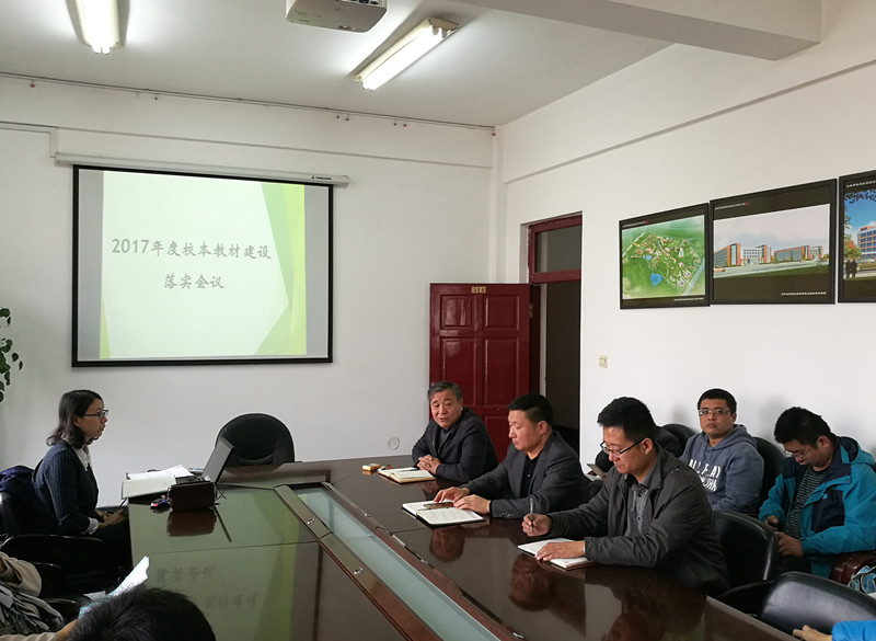 11月7日上午,学院召开2017年度校本教材建设落实会议,学院党委刘万芳书记、潘树枫副院长、郭源秩副院长、系(部)主任、办公室及教研室主任、专业带头人参加了会议。会议由教务处刘亚莉处长主持。