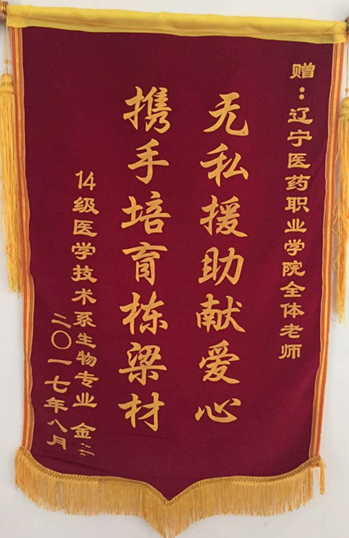 近日,一面书有“无私援助献爱心,携手培育栋梁材”的锦旗邮寄到了学院,这是医学技术系学生金×及其家长为表达其深深的感激之情特别定制的。感谢信中写道,是学院领导和师生的关怀,让他在大病面前感受到无私的大爱,是学院给了他莫大的帮助和慰藉,是全校师生的爱心增强了他战胜病魔的勇气。并表示要以积极的心态迎接生命中的每一天,尽其所能地感谢帮助过他的每一个人。
