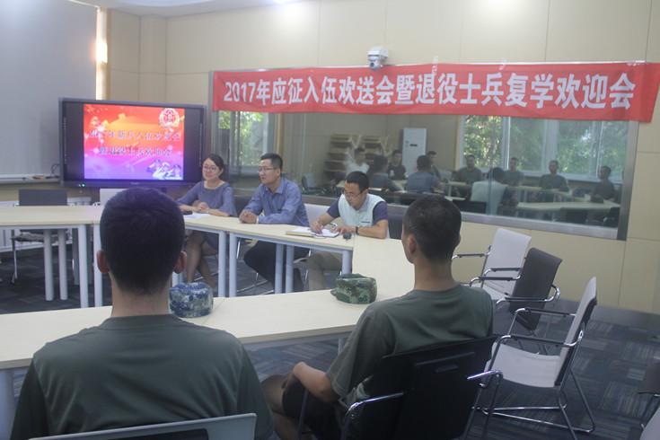 9月7日,学院2017年应征入伍欢送会暨退役士兵复学欢迎会在继续教育学院多功能厅举行。学院郭源秩副院长及武装部负责人参加了会议,共同欢送8名入伍学生,欢迎5名退役复学学生。