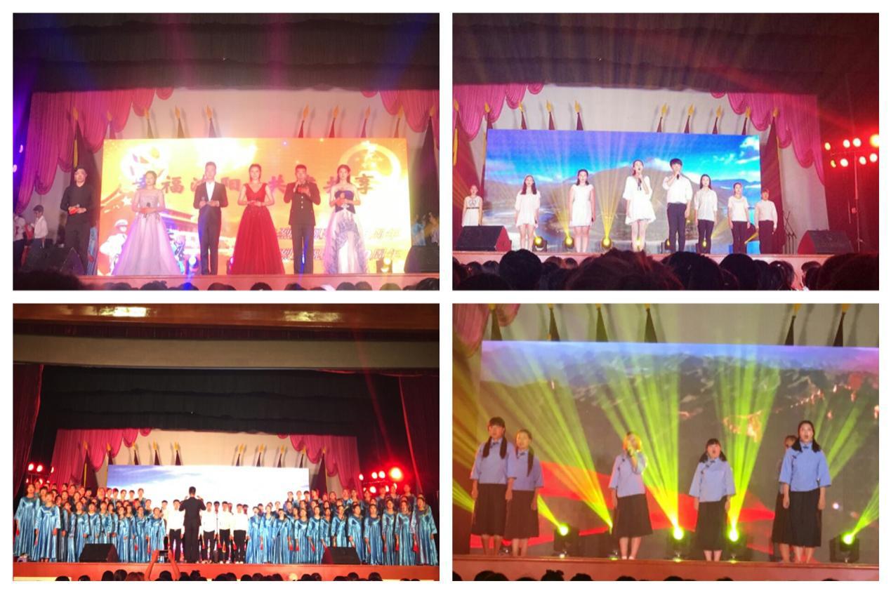舞台灯光璀璨,“幸福沈阳,共建共享”八个大字,悬挂在舞台背景上。我院带来的百人大合唱《映山红》拉开了演出的序幕,此唱彼和,气势磅礴;情景剧《十送红军》展现了红军战士背井离乡,扛起长枪,走上战场的壮烈场景;《太阳最红 毛主席最亲》、《军人大合唱》分别展现了新时代青年学子和官兵将士们的风采;《我的祖国》、《祖国颂》分别用舞蹈和朗诵的形式抒发了爱国之情;歌舞表演《鸿雁》,让人眼前一亮,嘹亮的歌声加上具有民族气息的舞蹈,二者相得益彰,博得阵阵掌声;吉他弹唱《大中国》唱出了对祖国深沉的眷恋与热爱,浓烈的爱国情怀在演出现场氤氲开来。社区干事、幼儿园的小朋友及部队战士们也带来了精彩的文艺表演。在《盛世欢歌》的舞蹈中,两个多小时的精彩演出圆满落下了帷幕。(文/周利、王丹 图/朱克非)