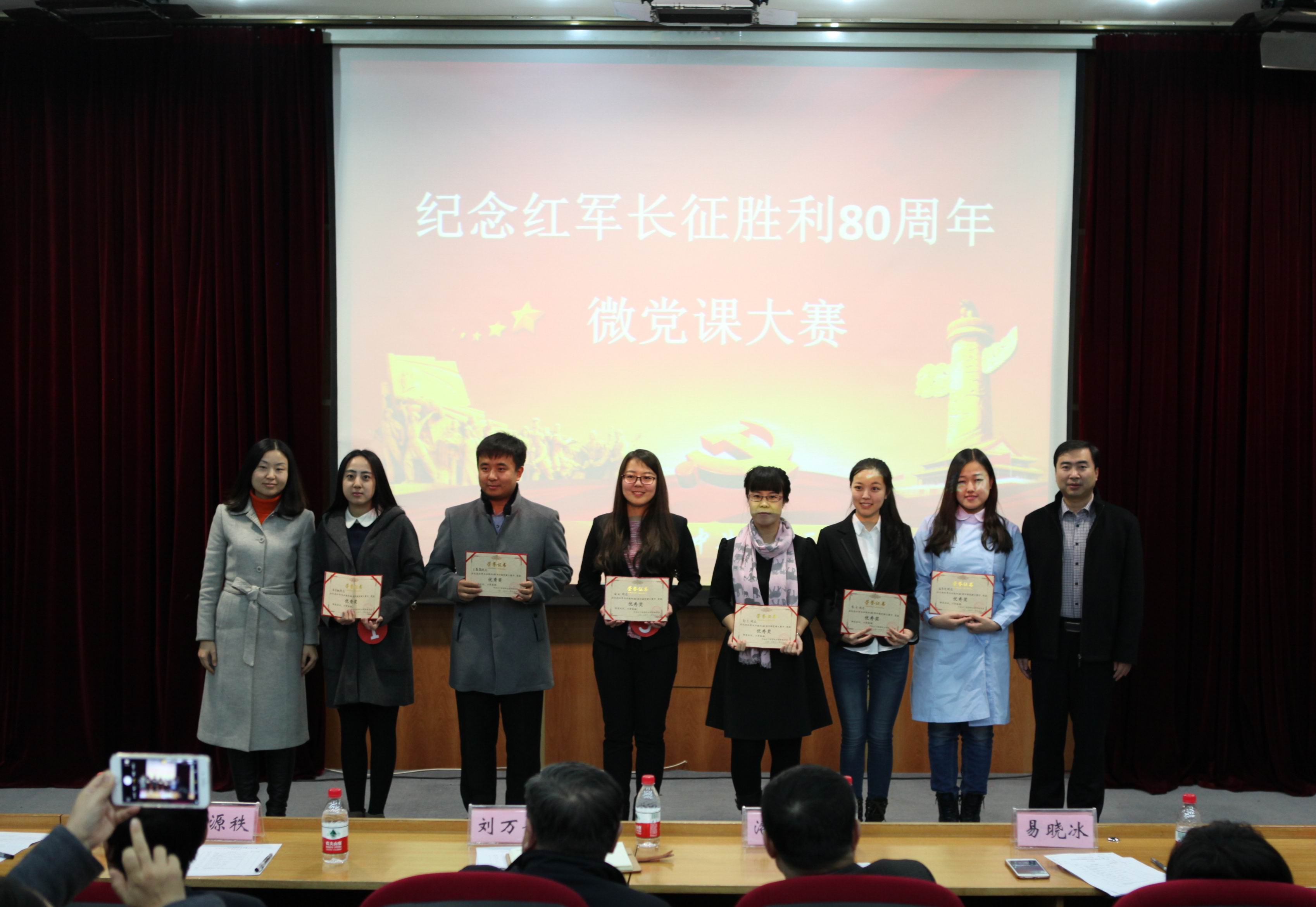 按照学院纪念红军长征胜利80周年活动总体安排,11月15日,学院在学术报告厅举办纪念红军长征胜利80周年微党课大赛。比赛通过生动活泼的微党课教育形式,深入推进“两学一做”学习教育,营造了广大党员不忘初心、继续前进的良好氛围。学院领导及党政办公室、纪委、发展规划处、思想政治理论课教学科研部直属党支部主要负责人出席比赛并担任评委。