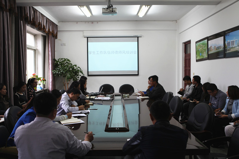 9月27日上午,学院在机关楼三楼会议室召开了学生工作队伍师德师风培训会,进一步强化了学生工作队伍作风建设,为全面推进学生工作打下了坚实基础。学院郭源秩副院长、党委易晓冰副书记以及全体学生工作者参加了会议。