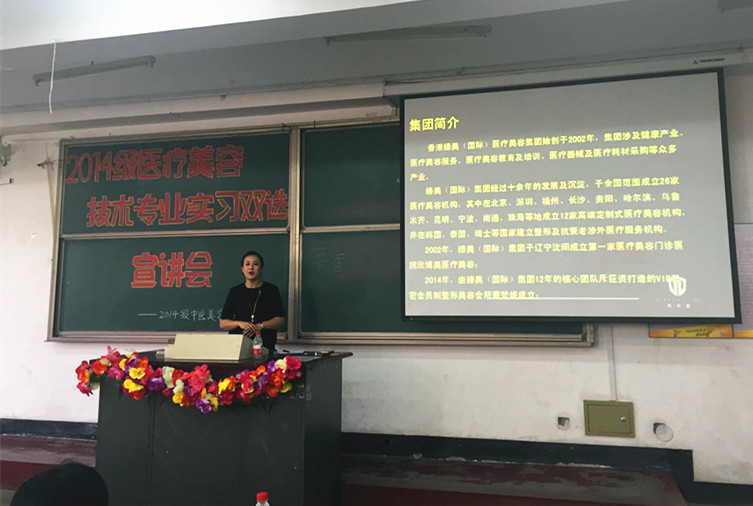 5月26日-27日,医学技术系2014级医疗美容技术专业实习双选会在综合楼阶梯二教室举行。沈阳梦郎集团、北京安杰玛化妆品公司、上海美丽田园有限公司等十余家国内知名企业参加了双选会。105名2014级医疗美容技术专业学生与企业成功签订实习协议。
