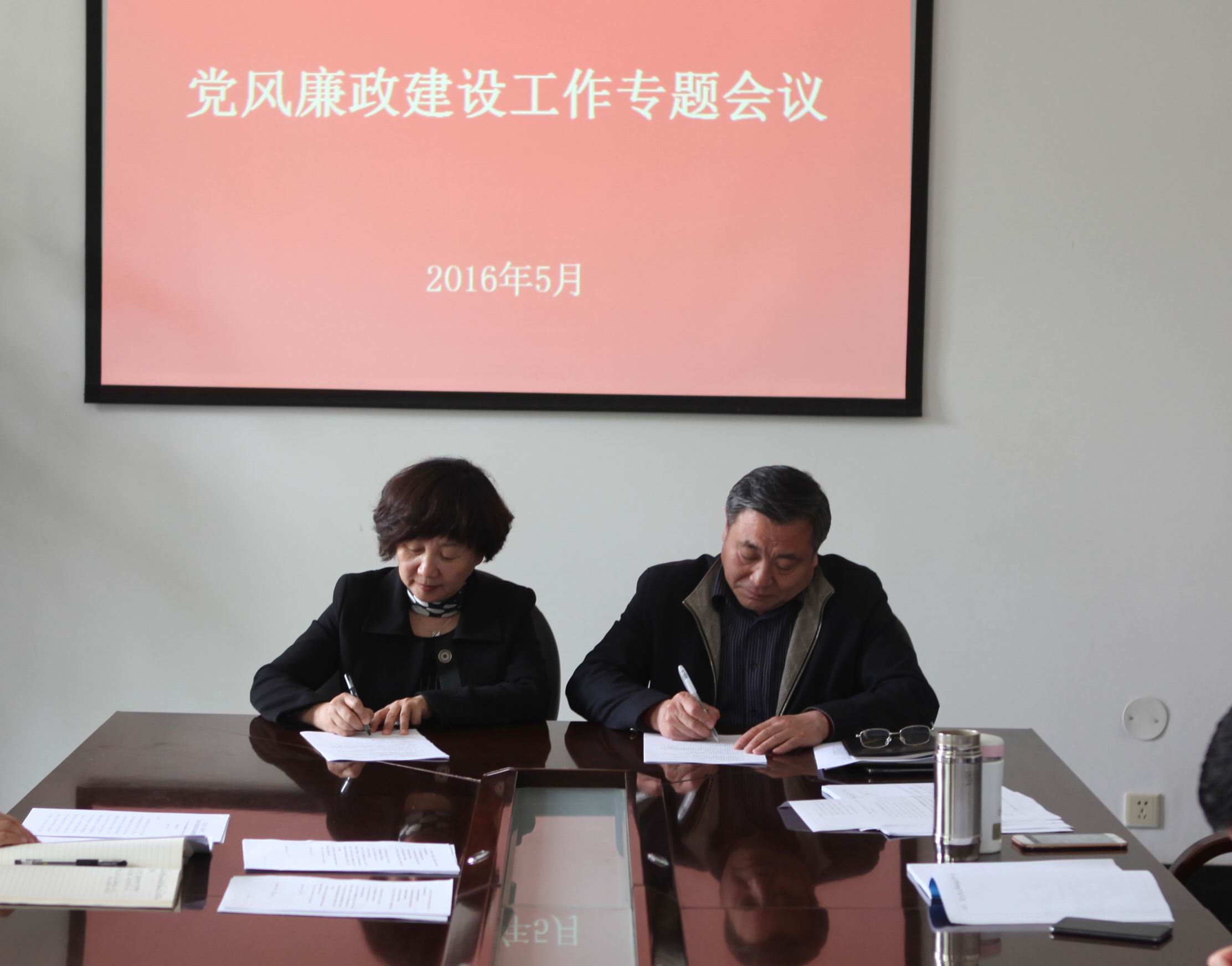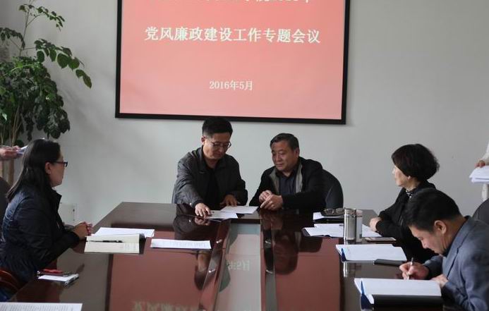 5月7日,学院党委在机关楼三楼会议室召开2016年党风廉政建设工作专题会议。学院领导、中层干部正职参加了会议。会议传达了习近平总书记重要讲话和上级有关文件精神,举行了党风廉政建设责任状签订仪式,学院党委刘万芳书记发表了重要讲话。此次会议标志着学院党风廉政建设教育宣传月活动正式启动。