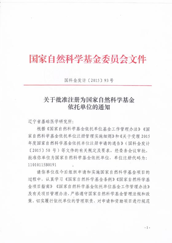 近日获悉,辽宁省基础医学研究所被正式批准为国家自然科学基金依托单位,为我院教师申报自然科学研究领域的科研课题提供了新的学术平台,标志着我院科学研究进入了一个更高、更全面的阶段。