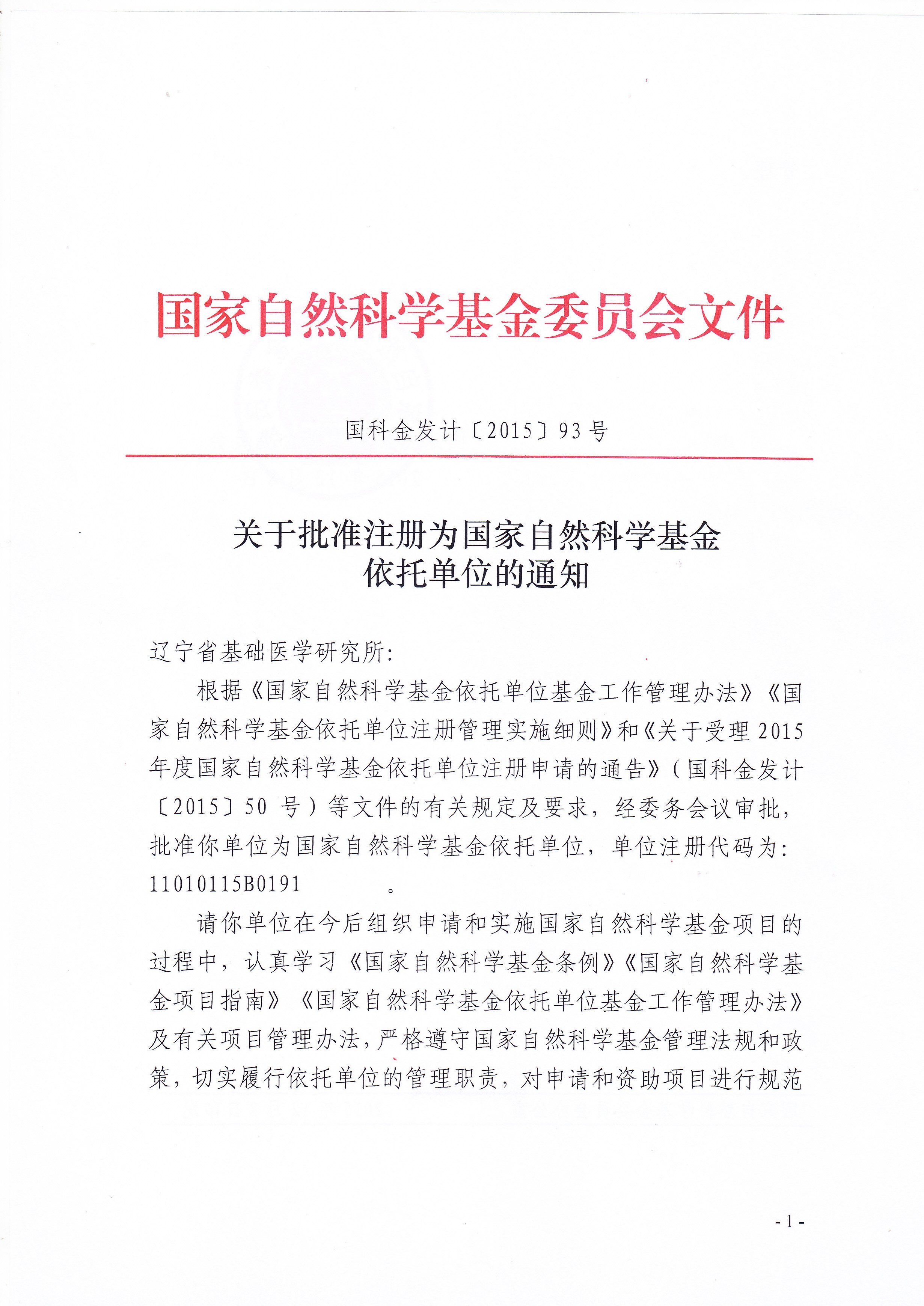 国家自然科学基金主要支持基础研究,以促进基础学科建设,发现、培养优秀科技人才,现形成和发展为研究项目、人才项目和环境条件项目,代表我国自然科学基础性研究的最高层次,是高等学校基础性研究的资金来源渠道之一。此次辽宁省基础医学研究所申请国家自然科学基金依托单位工作历时六个多月,最终获得国家自然基金委批准。今后,我院教师凡符合申报条件的,均可依托该平台申报国家自然科学基金项目。(文、图/徐国锋)