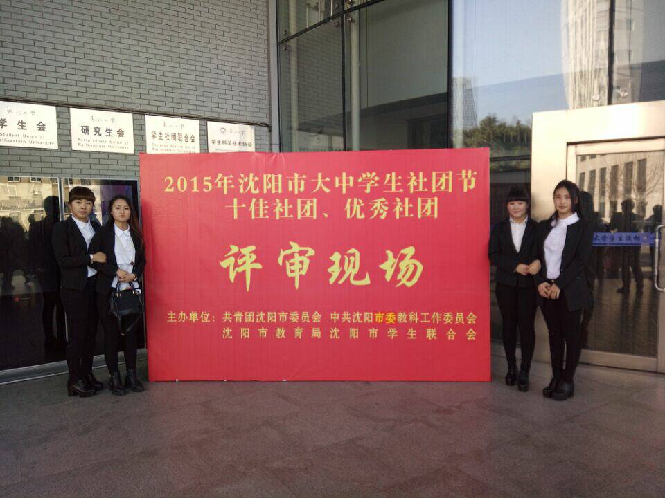11月28日,2015年沈阳市大中学生“十佳社团”和“优秀社团”评审答辩会在东北大学南湖校区大学生活动中心落下帷幕。我院大学生创业协会、彩球社、医学技术系发艺社、护理系志愿者社4个学生社团参加了评选答辩会,并荣获“优秀社团”荣誉称号。