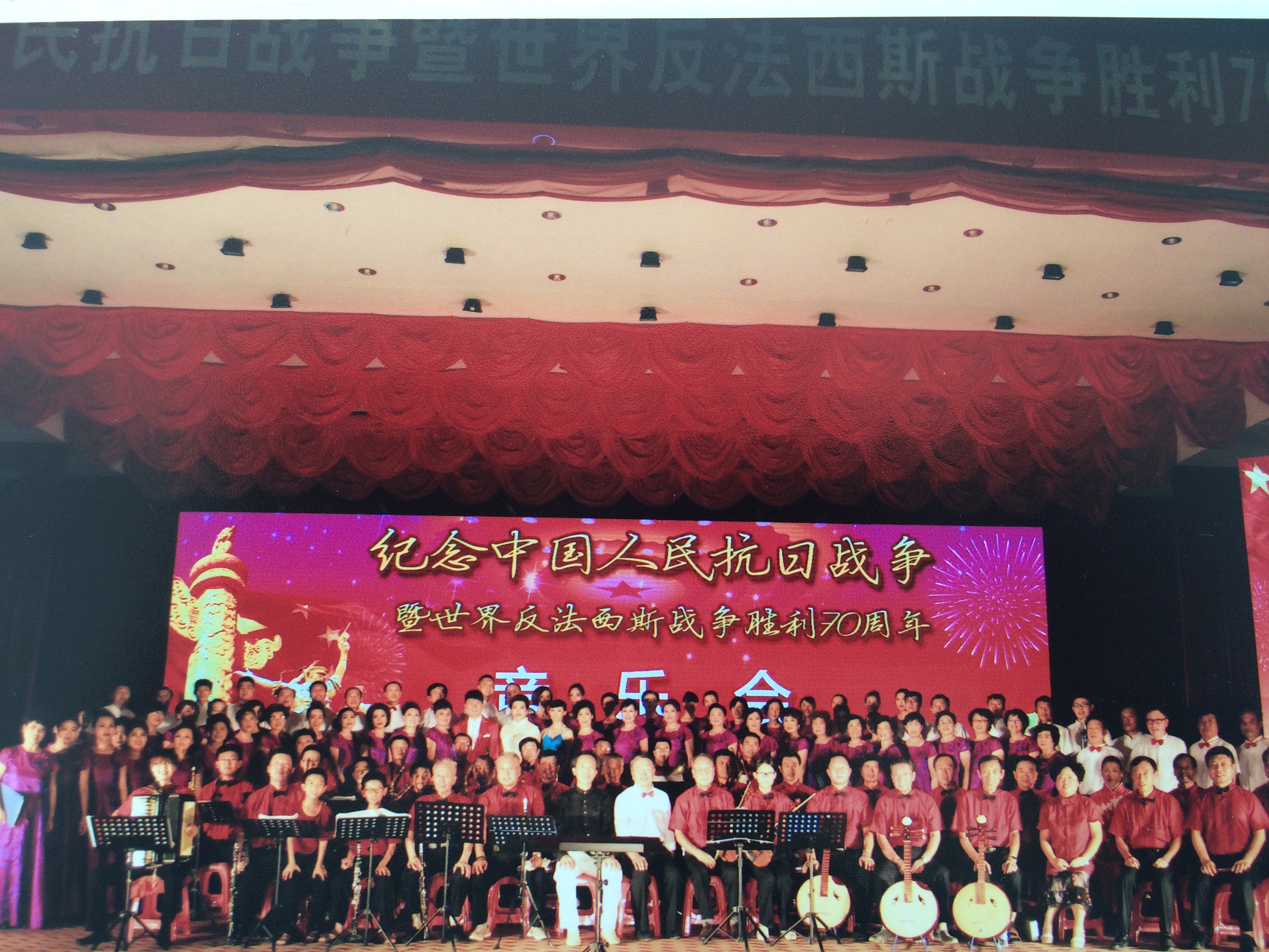 为纪念中国抗日战争暨世界反法西斯战争胜利70周年,抒发爱国热情,弘扬主旋律,我院肖骁老师组建了民间艺术团体闾山朝夕爱乐组合,联合北镇市政协,策划举办了纪念中国抗日战争暨世界反法西斯战争胜利70周年大型音乐会,并担任指挥。